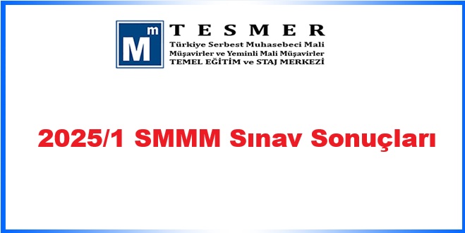 2025/1 SMMM Sınav Sonuçları 20/06/2025 Duyurular, Genel 12-13 Nisan 2025 tarihlerinde yapılan 2025/1. Dönem SMMM Sınav Sonuçları http://sonuc.tesmer.org.tr adresinde erişime açılmıştır. 2025-06-20 rsmmmo