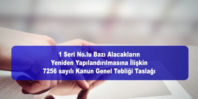 24/11/2020 tarihinde 1 Seri No.lu Bazı Alacakların Yeniden Yapılandırılmasına İlişkin 7256 sayılı Kanun Genel Tebliği yayımlanmak üzere Cumhurbaşkanlığı’na gönderilmiştir. 25/11/2020 Duyurular, Genel 2020-11-25 rsmmmo