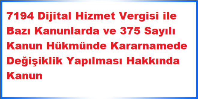 7194 Dijital Hizmet Vergisi ile Bazı Kanunlarda ve 375 Sayılı Kanun Hükmünde Kararnamede Değişiklik Yapılması Hakkında Kanun