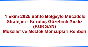 1 Ekim 2025 Sahte Belgeyle Mücadele Stratejisi – Kuruluş Gözetimli Analiz (KURGAN) Mükellef ve Meslek Mensupları Rehberi