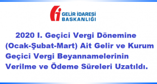 2020 I. Geçici Vergi Dönemine (Ocak-Şubat-Mart) Ait Gelir ve Kurum Geçici Vergi Beyannamelerinin Verilme ve Ödeme Süreleri Uzatıldı.