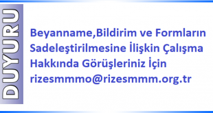 Beyanname ,Bildirim ve Formların Sadeleştirilmesine İlişkin Çalışma Hakkında Görüşleriniz İçin rizesmmmo@rizesmmm.org.tr