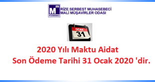 2020 Yılı Maktu Aidat Son Ödeme Tarihi 31 Ocak 2020 …