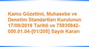 Kamu Gözetimi, Muhasebe ve Denetim Standartları Kurulunun 17/09/2019 Tarihli ve 75935942-050.01.04-[01/205] Sayılı Kararı