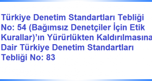 Türkiye Denetim Standartları Tebliği No: 54 (Bağımsız Denetçiler İçin Etik Kurallar)’ın Yürürlükten Kaldırılmasına Dair Türkiye Denetim Standartları Tebliği No: 83