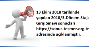 13 Ekim 2018 tarihinde yapılan 2018/3.Dönem Staja Giriş Sınavı sonuçları https://sonuc.tesmer.org.tr/ adresinde …