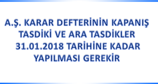 A.Ş. Karar Defterlerinin Kapanış Tasdiki ve Ara Tasdikler 31.01.2018 Tarihine Kadar Yapılması Gerekir