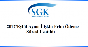 2017/Eylül Ayına İlişkin Prim Ödeme Süresi Uzatıldı