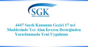 4447 Sayılı Kanunun Geçici 17 nci Maddesinde Yer Alan İşveren Desteğinden Yararlanmada Yeni Uygulama