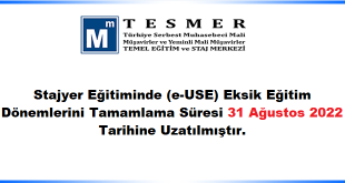 Stajyer Eğitiminde (e-USE) Eksik Eğitim Dönemlerini Tamamlama Süresi 31 Ağustos 2022 tarihine uzatılmıştır.