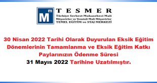 30 Nisan 2022 Tarihi Olarak Duyurulan Eksik Eğitim Dönemlerinin Tamamlanma ve Eksik Eğitim Katkı Paylarınızın Ödenme Süresi 31 Mayıs 2022 Tarihine Uzatılmıştır.