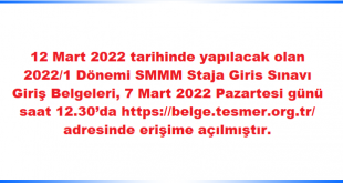 12 Mart 2022 tarihinde yapılacak olan 2022/1 Dönemi SMMM Staja …