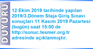 12 Ekim 2019 tarihinde yapılan 2019/3.Dönem Staja Giriş Sınavı sonuçları …