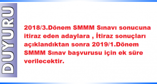 2018/3.Dönem SMMM Sınavı sonucuna itiraz eden adaylara , İtiraz sonuçları açıklandıktan sonra 2019/1.Dönem SMMM Sınav başvurusu için ek süre verilecektir.