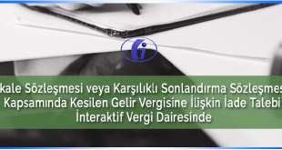 İkale Sözleşmesi veya Karşılıklı Sonlandırma Sözleşmesi Kapsamında Kesilen Gelir Vergisine İlişkin İade Talebi İnteraktif Vergi Dairesinde