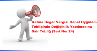 Devamını Oku »Katma Değer Vergisi Genel Uygulama Tebliğinde Değişiklik Yapılmasına Dair Tebliğ (Seri No: 24)