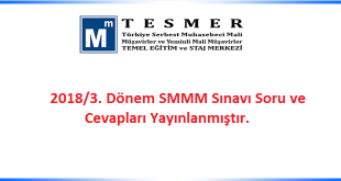 Devamını Oku »2018/3. Dönem SMMM Sınavı Soru ve Cevapları Yayınlanmıştır.