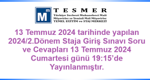 13 Temmuz 2024 tarihinde yapılan 2024/2.Dönem Staja Giriş Sınavı soru ve cevapları 13 Temmuz 2024 Cumartesi günü 19:15’de yayınlanmıştır.