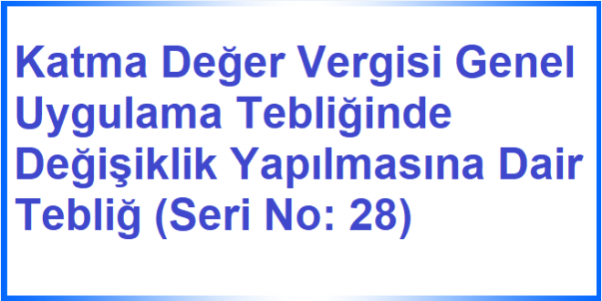 Katma Değer Vergisi Genel Uygulama Tebliğinde Değişiklik Yapılmasına Dair Tebliğ (Seri No: 28) 11/11/2019 Duyurular, Genel 2019-11-11 rsmmmo